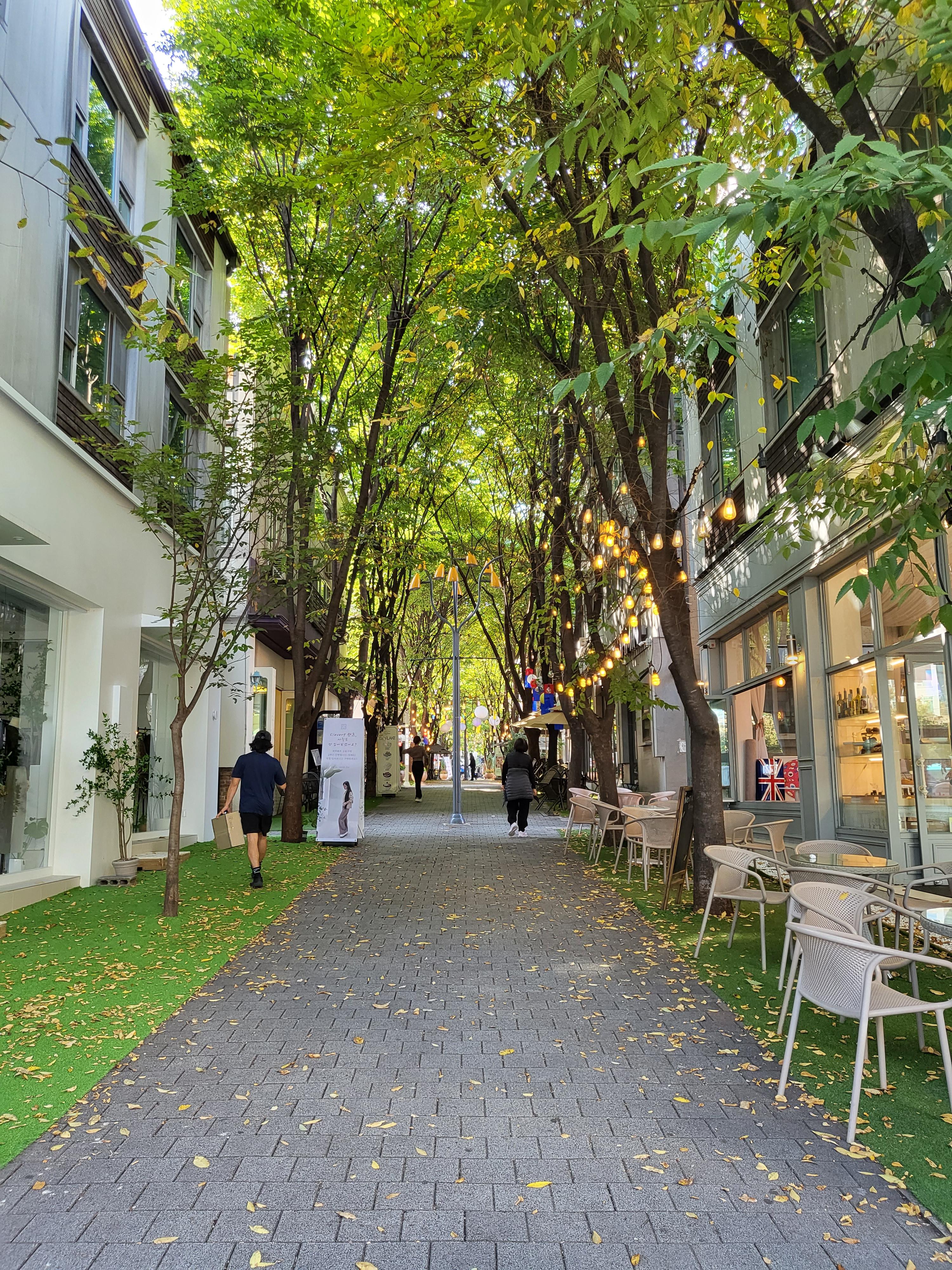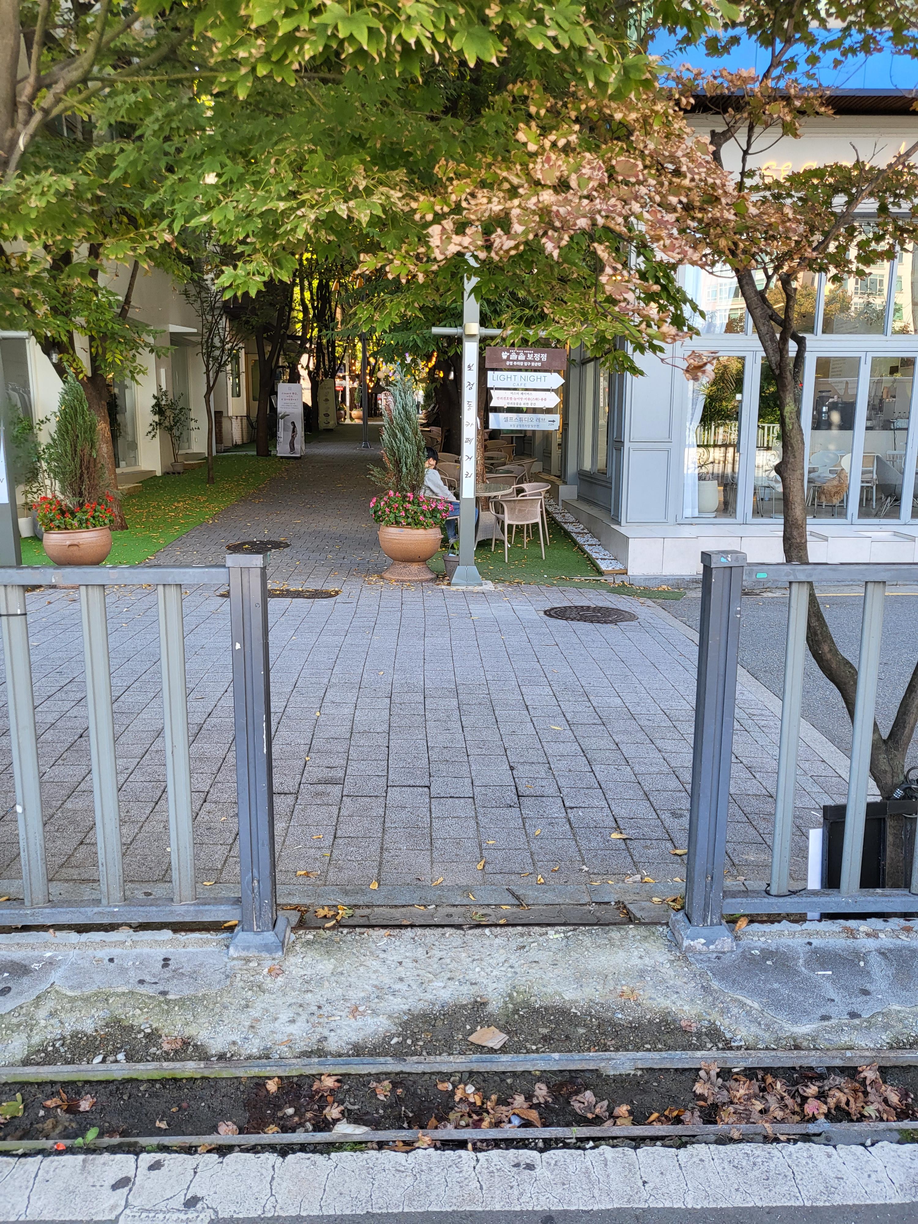 옆쪽으로 작게 문이 나 있어 차가 다니는 쪽을 지나지 않고도 카페거리로 편하게 이동할 수 있습니다.