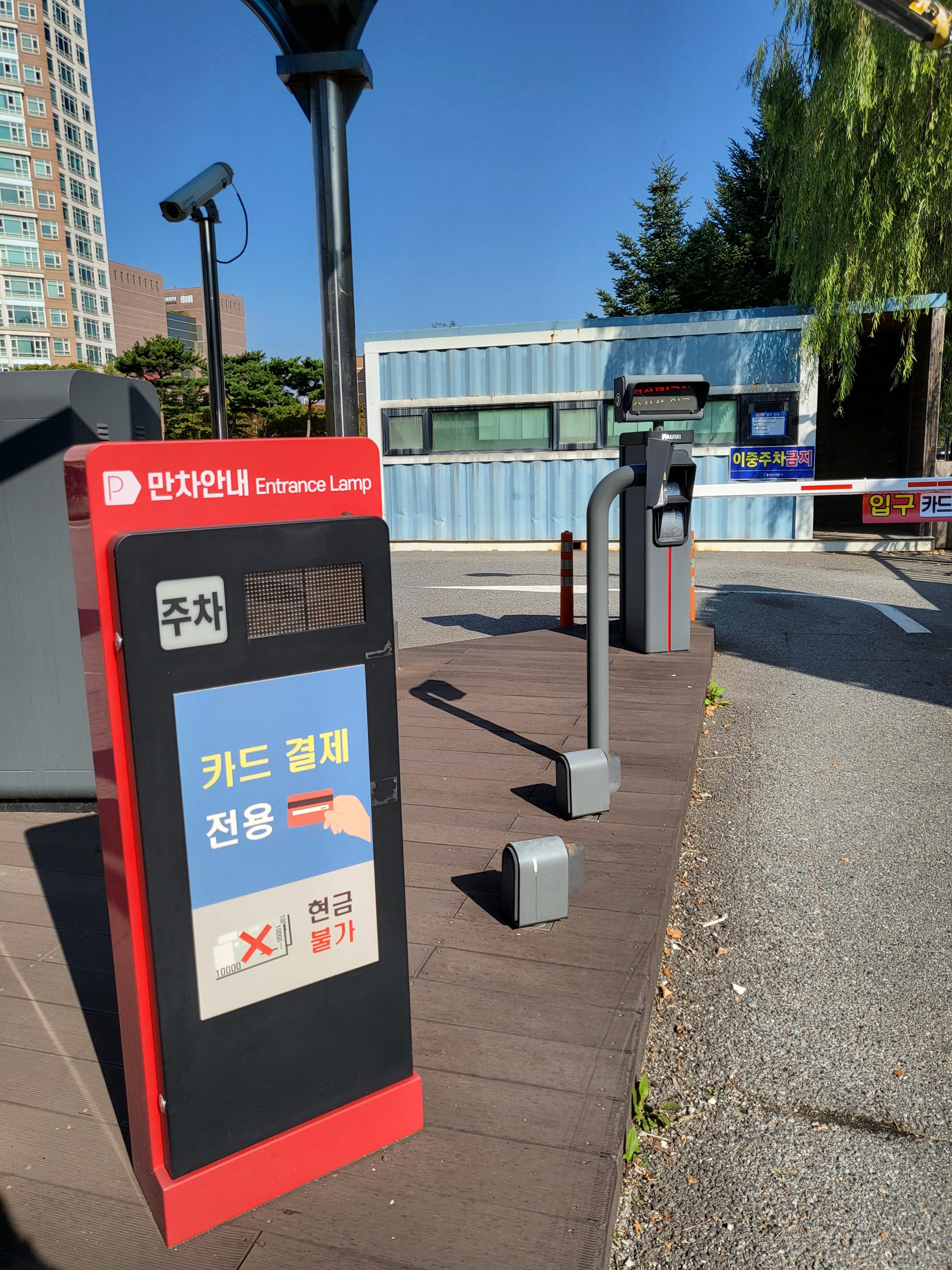 무인주차장으로 운영되고 있으며 카드 결제 전용으로 현금 결제는 할 수 없습니다.