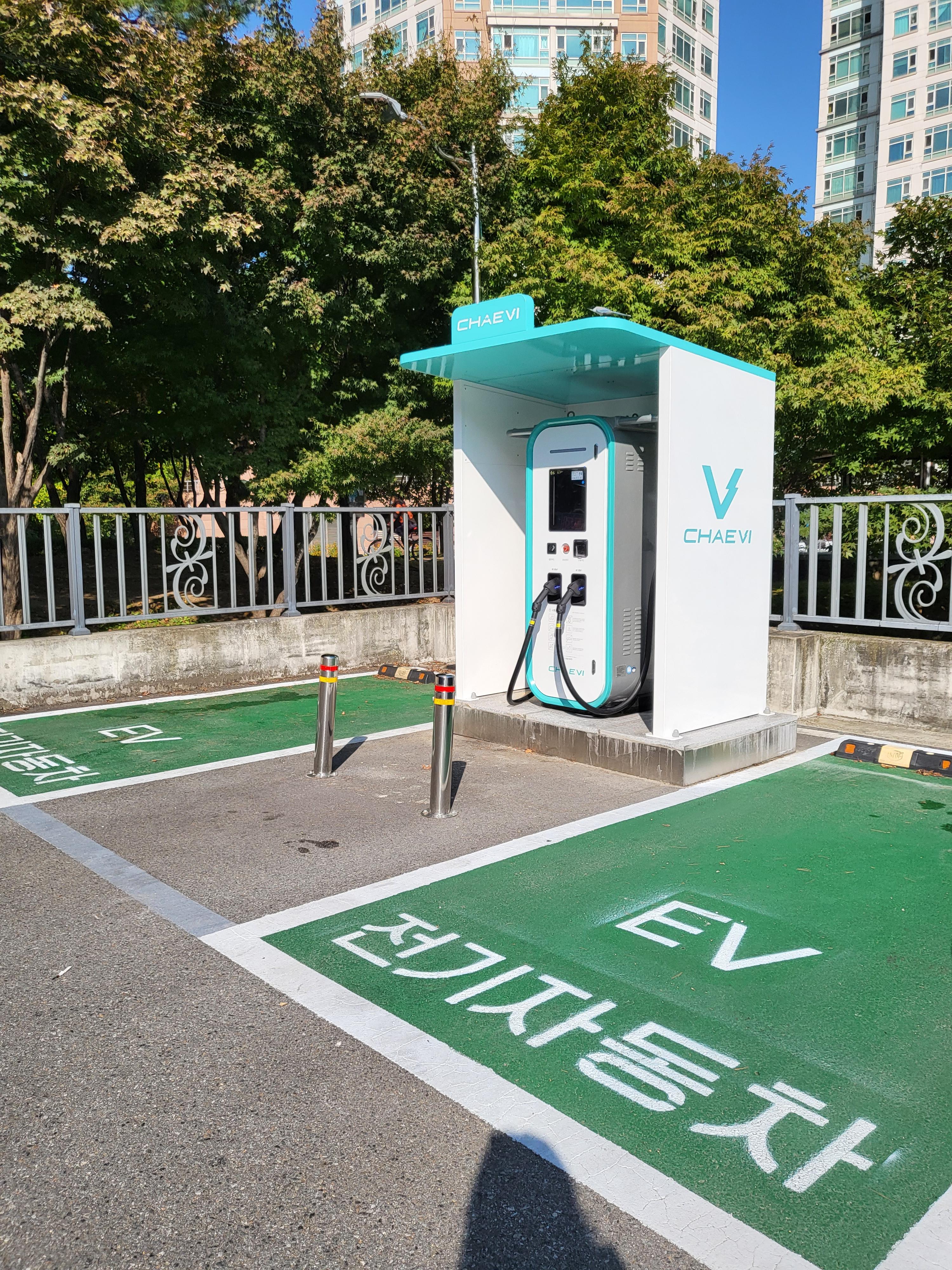 안쪽에는 전기차를 충전할 수 있는 자리도 마련되어 있습니다.