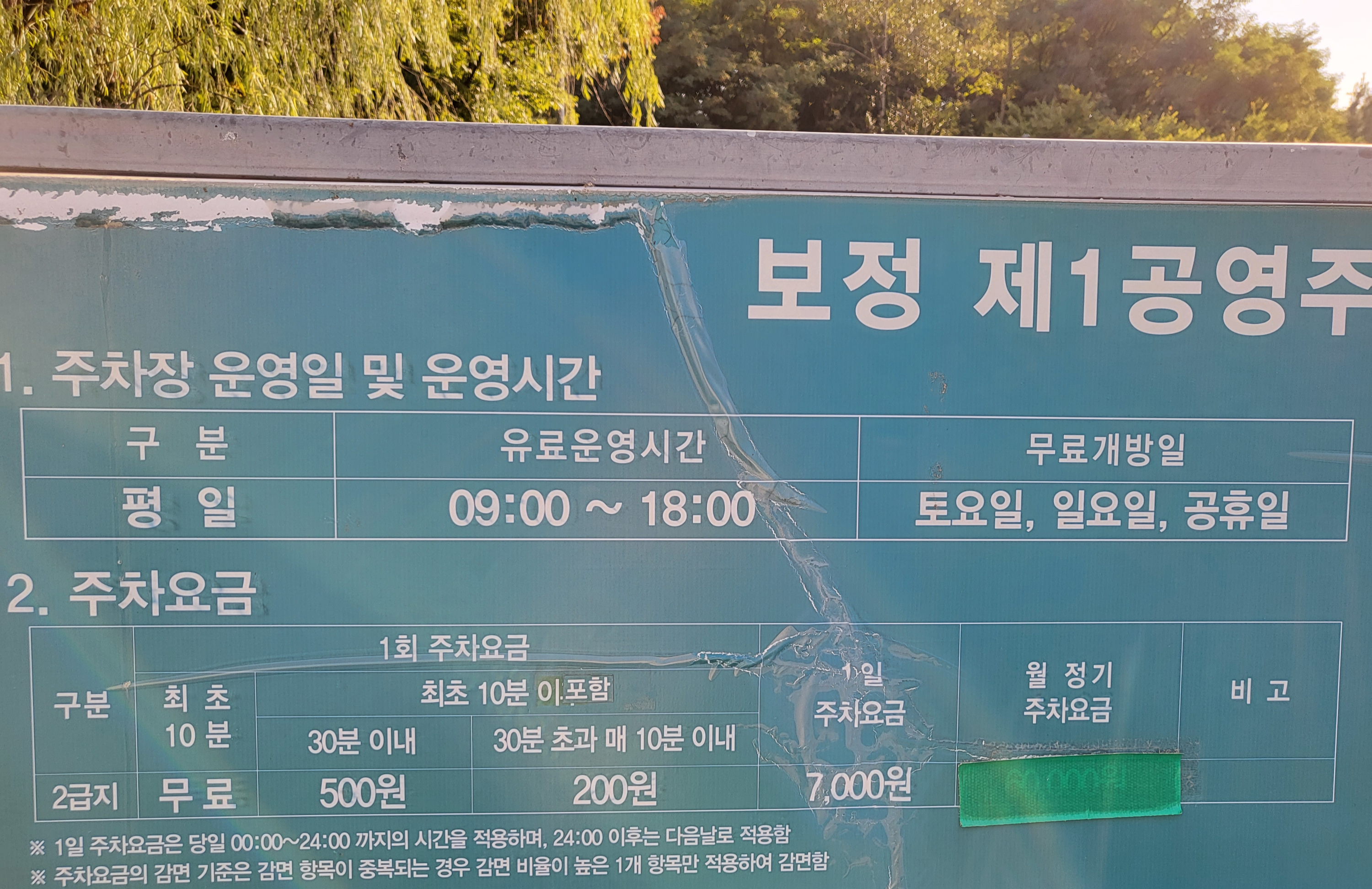 오늘은 보정동 카페거리에 있는 보정동 공영주차장(보정1공영주차장) 정보를 남겨보았습니다. 주차장이 크진 않지만 붐비는 시간대만 피한다면 유용하게 사용할 수 있습니다. 공영주차장이라 요금이 많이 나오지 않는다는 장점도 있습니다.