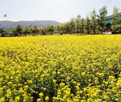 서울 근교에서 유채꽃이 아름다운 곳으로는 대표적으로 구리 한강시민공원이 있습니다. 구리 한강시민공원은 넓은 면적으로 유명한데요. 서울 상암동 월드컵경기장의 두 배에 달하는 12만 제곱미터의 면적에 유채꽃밭이 펼쳐져 장관을 이룹니다. 코로나 전에는 5월 초중순에 유채꽃 축제가 열렸고 연 방문객이 100만 명이나 되었다고 합니다. 올해 유채꽃 축제가 다시 열리지 않을지 기대가 되는 곳입니다.